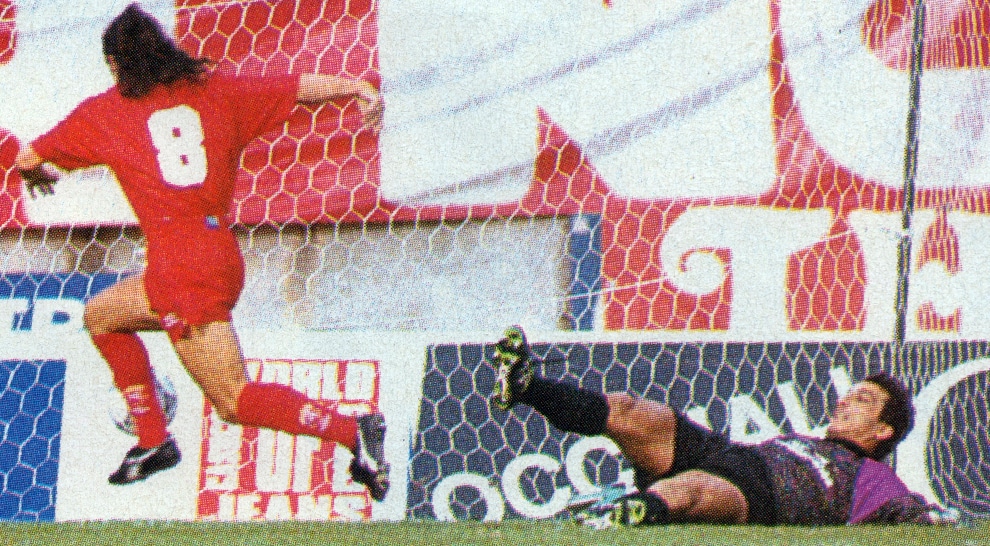 «Il portiere a terra sembrerebbe il povero Franco Mancini, mentre il calciatore in rosso milita nelle fila dell’Ancona, come si può facilmente capire dallo stemma del club dorico ricamato sui calzettoni. Resta da capire se si tratti del match di andata o di ritorno: la presenza di Zarate fa ritenere per quello d’andata»),