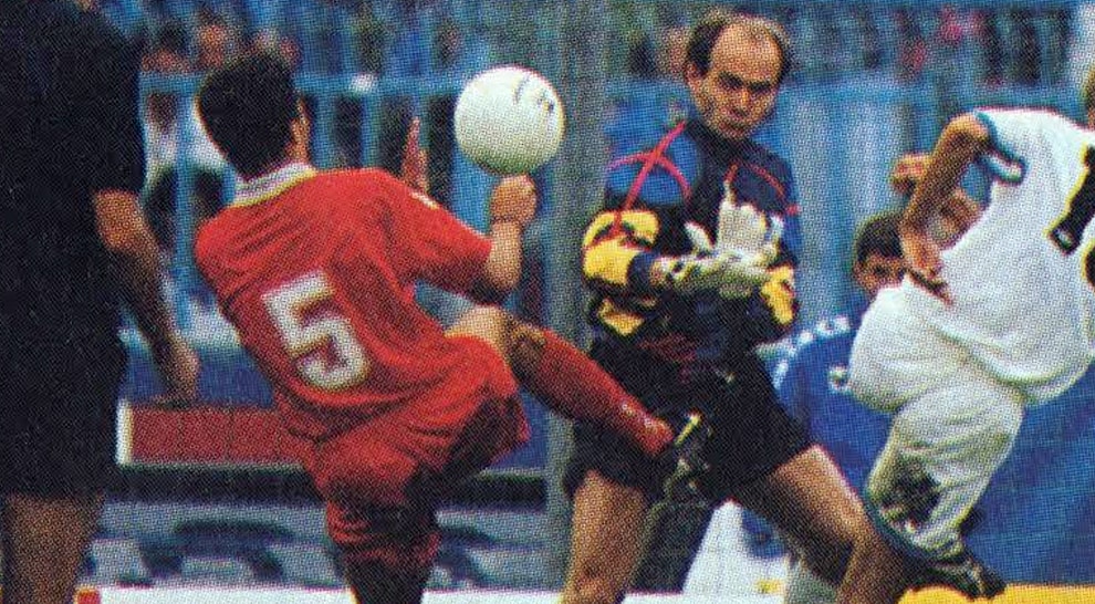 «Riconoscibilissimo il portiere Ballotta, non resta che individuare l’annata calcistica e di grande aiuto i pantaloncini bianchi con bordo azzurro tipici della Umbro dal ’93 in poi»),