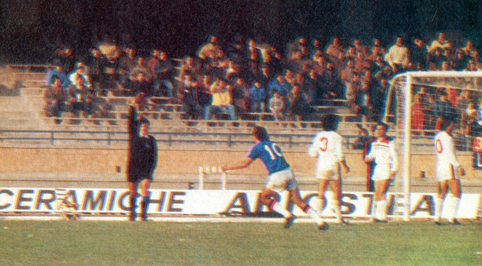 «Facile individuare il Cagliari dal cartellone Ceramiche Ariostea, sponsor di quel periodo, un po’ più arduo capire quella strana maglia viola. In un primo momento ho pensato alla Fiorentina, ma guardando la foto sugli spalti, la partita è stata giocata in inverno, mentre la partita con i viola è stata giocata a maggio»),