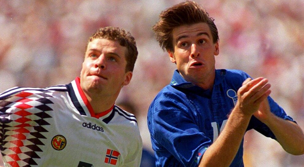 Nel ‘98, l’Italia di Cesare Maldini, dopo aver concluso in testa il proprio girone, affrontò la Norvegia in un ottavo di finale ostico e terminato 1-0 grazie a un gol di Bobo Vieri al 18’ del primo tempo. Ad oggi è l’ultima gara in un Mondiale per la Norvegia, che in tre partecipazioni complessive ha sempre affrontato l’Italia. Accadde anche nel 1994, nella fase a gruppi. Italia, Norvegia, Messico ed Eire chiusero il girone a pari punti (4): i gol fatti permisero all’Italia di passare il turno e rimandarono i norvegesi sull’aereo di ritorno per Oslo. Lo scontro diretto terminò 1-0 per gli uomini di Arrigo Sacchi: gol-partita di Dino Baggio (mentre l’altro Baggio, Roberto, fu richiamato in panchina dal Ct, al momento dell’espulsione di Pagliuca. Famosa la frase del Codino: “Ma questo è matto”). L’incontro si giocò a New York e fu l’unico successo italiano nella prima fase del Mondiale statunitense.