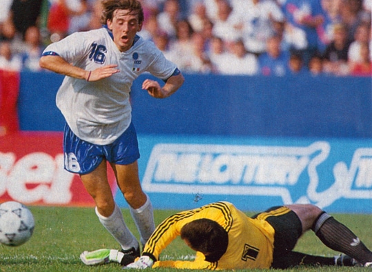 Ma certo, era la U.S. Cup del 1992: complimenti ai tanti lettori che hanno indovinato. Non riconoscere Beppe Signori sarebbe stato un delitto. Più tosto invece individuare il portiere, l’irlandese Pat Bonner, visto di spalle. Il match in questione era il secondo del quadrangolare americano disputato nell’estate del ’92, e terminò 2-0 per gli azzurri. Fu l’unico successo di quella tournée. Sotto con i vincitori e le curiosità: