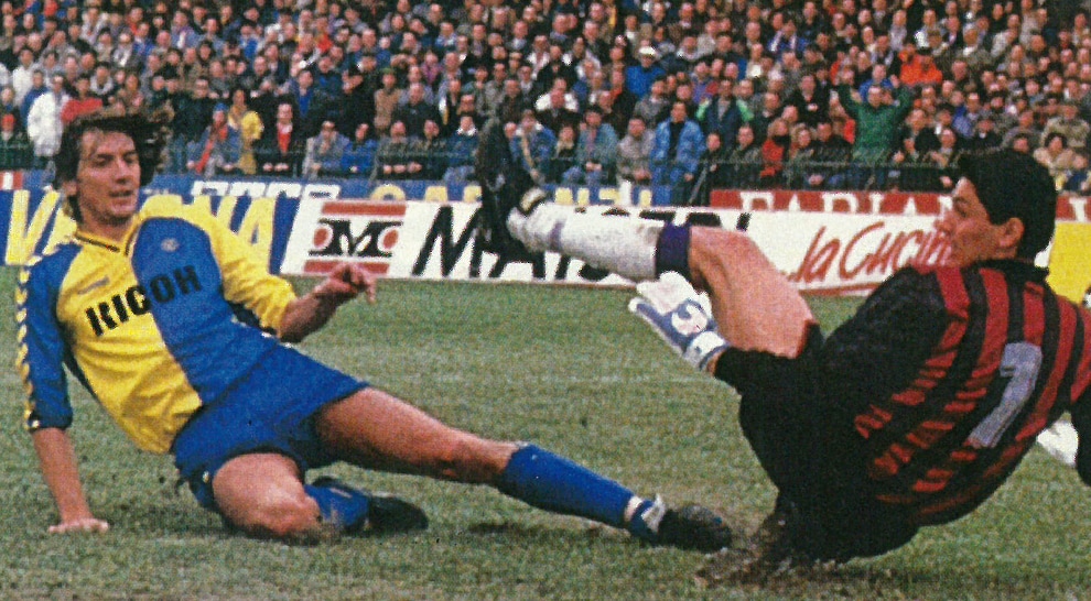 Cari guerinetti, finite le feste, torna l'appuntamento con il nostro quiz. Riconoscete la partita della foto qua sopra? Scrivetelo indicando squadre, anno e risultato. Martedì sveleremo i vincitori. Buon divertimento. AGGIORNAMENTO DEL 12 GENNAIO Il primo appuntamento del 2016 ci ha portato alla stagione 1987-88, più precisamente a Verona-Fiorentina 1-0, decisa da un gol di Marco Pacione. Ecco i vincitori di questa puntata: Claudio F. - Termoli («Nella foto il gol partita di Marco Pacione, che a Verona ritrova continuità dopo la disastrosa stagione con la Juventus culminata nella famosa gara di coppa campioni contro il Barcellona dove fallisce un'infinità di palle gol»), Rosario («Quell’edizione del torneo sarà ricordata, oltre che per l’affermazione del Milan di Sacchi che iniziò il suo ciclo vincente, per altri due eventi: fu l’ultimo campionato a sedici squadre e l’ultima stagione in massima serie dell’Avellino, retrocesso insieme all’Empoli, e mai più risalito»), Nospeech («Gara tra due squadre in declino dopo essere state sicure protagoniste nella prima metà degli anni ’80: il Verona, ancora affidato a Bagnoli, affianca ad alcuni reduci dello storico scudetto di tre anni prima - Fontolan, Volpati, Sacchetti, Di Gennaro ed Elkjaer - nuovi volti in cerca di rilancio; la Fiorentina, per la prima volta senza Antognoni, prova a rilanciarsi con Eriksson in panchina e puntando tutto sulla coppia d’attacco Diaz-Baggio»), Stooge70 («Quella è la terza maglia del Verona 1987-88»), Paolo Longherese, Carmine di Orta di Atella, Felix, Franco Roncarati, Cristiano, Gabry, Andrea Bottioni, Gabriele («Ho “Il Film del campionato” del Guerin dal 1983…»), Frank («Bellissima la maglia del Verona della Hummel»), Alberto, Oswald, Stefano Balducci, Federico65 («La Fiorentina si classificò all’ottavo posto con 28 punti mentre il Verona concluse al decimo posto con 25 punti»), Max Pandini, Luca, Enrico, Mauro («I viola di Eriksson dopo un buon inizio - alla seconda giornata sconfissero i futuri campioni d’Italia del Milan di Sacchi a San Siro per 2-0 con Baggio autore di una delle più belle reti di tutta la sua carriera - erano in caduta libera. Si ripresero nel finale e raggiunsero alla fine, dopo due prestigiose vittorie contro Napoli e Juventus, l’ottavo posto»), Francesco («Ho riconosciuto Landucci, portiere dei viola, dalla colorazione dei guanti e del bordo dei calzettoni»), Carlo Lorenzo Favretto, Fabio, Marco Benecchi, Giulio Mosna («Marco Pacione, attuale team manager del Chievo Verona, è stato protagonista di una discreta carriera, arrivando a giocare anche nelle file della Juventus»), MarcelloS. («Il Verona si salvò per un solo punto. Pessimo il finale, con soli due punti nelle ultime otto partite»), Fabrizio Perego, Giuseppe Pizzuti («Il Milan è Campione d’Italia e secondo il Napoli, che precipita in un paio di settimane dalla prospettiva quasi scontata del bis scudetto a una crisi insolubile»), Mario 87, Fabio Giacomo Cobianchi, Giambertoldo («Buonissima annata per Landucci che a fine stagione farà il terzo portiere - a casa - dell’Italia ai Campionati Europei dietro Zenga e Tacconi»), Luca Gazzolo, Pertici Romeo, Antognoni2007, Gianfrancesco Sapia, Roberto Branchi («Con quel modello di maglia Pacione contro la Fiorentina ha giocato solo quel giorno»), Rossano Pistelli, Antonio Pistorio, Stefano («La partita è riconoscibile per la particolare terza maglia del Verona, ispirata al modello “Hummel” sfoggiato dalla Danimarca nel Mondiale 1986, per l’altrettanto caratteristica divisa da portiere utilizzata da Landucci e per i volti chiaramente distinguibili di Pacione e dello stesso Landucci, attuale vice allenatore di Allegri alla Juventus»), David XIV, Procacciax, Alessandro, Massimo Fiore, Marco De Polignol, Alberto da Sesto F.no, Luca Fornara, Diego, Luigi Ferrara, Antonio Caminiti. Appuntamento a sabato. Giovanni Del Bianco La classifica: