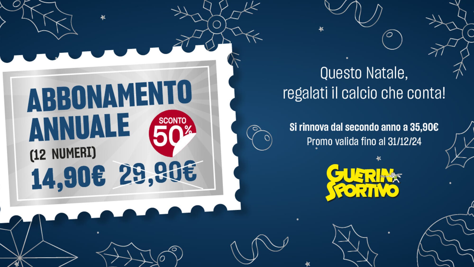 Questo Natale metti il Guerin Sportivo sotto l'albero: approfitta dell'imperdibile offerta per abbonarti per un anno all'edizione digitale della rivista, al prezzo di 14,90 Euro invece che a 29,9o. Con l'edizione digitale potrai portare il Guerin Sportivo sempre con te, e approfittando della promo, potrai fare ai tuoi amici un bellissimo regalo di Natale. Affrettati, la promo scade il 31 dicembre 2024!