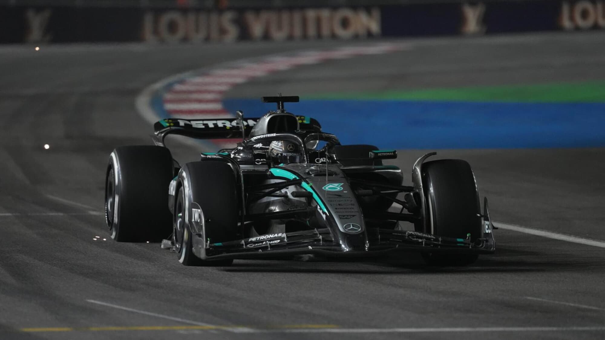 Complici le squalifiche di Norris e di Piastri, la Mercedes conquista un secondo e terzo posto con George Russell (sopra raffigurato) e con Andrea Kimi Antonelli.