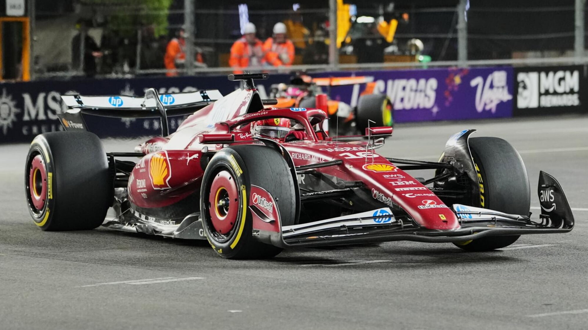 Leclerc ha disputato ancora una volta una buona gara, e sopratutto nel primo stint di gara con gomme medie era riuscito a risalire fino al quarto posto, togliendosi la soddisfazione di superare la McLaren di Piastri. Una volta passato il pilota australiano, la scuderia di Maranello ha deciso di non rispondere all’undercut messo in scena da Piastri (fermatosi poco dopo), preferendo restare in pista e provare ad attaccare il terzo posto della Williams di Carlos Sainz Jr. Una scelta con il senno di poi rivelatasi errata: non solo Leclerc finirà per perdere fino a due secondi in un giro faticando non poco a superare Sainz, ma una volta tornato in pista nel corso del 24°giro (dopo essersi fermato ai box per passare dalle gomme medie a quelle dure) si ritroverà alle spalle di Piastri, pur stando davanti a Sainz (fermatosi nel corso del 22°giro).