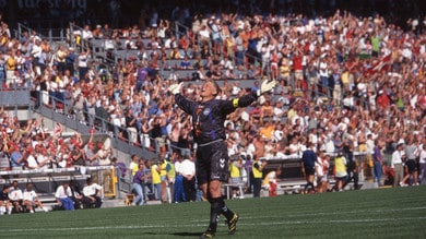 In porta però c'era Schmeichel, montagna umana incubo per gli attaccanti delle altre squadre. Persino di Marco Van Basten, all'epoca realmente in modalità semi-divina. Di solito infallibile sui calci di rigore, il "Cigno di Utrecht" in semifinale si fa ipnotizzare da Peter nella lotteria che deve rompere l'equilibrio dopo il 2-2 dei tempi supplementari. Un tuffo a sinistra, come se fosse la cosa più facile del mondo, Olanda eliminata e Danimarca in finale, poi vincente 2-0 contro la Germania.