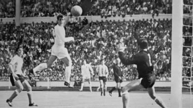 La leggendaria gara di Wembley viene stappata dal centrocampista del Bologna Hemut Haller, ma i ragazzi del West Ham confezionano subito il pari, con Hurst a schiacciare in rete il pallone crossato da Moore. L’Inghilterra domina il campo e passa meritatamente in vantaggio al 78esimo con Peters. I tedeschi, però, non muoiono mai e pareggiano con Weber all’ultimo minuto. Iniziano qui i tempi supplementari più controversi della storia del calcio. Al minuto 101 Hurst addomestica il cross di Ball e si gira in area: il suo destro è un missile che sbatte sulla parte bassa della traversa e scende velocemente sulla linea di porta. Senza tecnologia è impossibile stabilire se la palla sia dentro o fuori, fatto sta che gli inglesi chiedono con veemenza il gol, mentre i tedeschi protestano. La decisione spetta all’arbitro Dienst che, una volta confrontatosi con il guardalinee sovietico (Tofik Bachramov, che in guerra avaeva combattuto nell'Armata Rossa contro i tedeschi), decreta il vantaggio inglese. Geoff Hurst è l’autore del celebre “Wembley goal”, il gol fantasma per antonomasia. La ciliegina sulla torta della giornata perfetta a tempo scaduto, quando l’attaccante del West Ham batte per la quarta volta il portiere tedesco, diventando così il primo – e a oggi l’unico – ad aver mai segnato una tripletta in una finale di Coppa del Mondo.